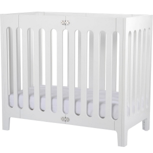 | | Вариант использования кроватки на колесиках, для возможности перекатывать из комнаты в комнату. Ложе с матрацем на верхнем уровне используется с рождения до момента начала стояния на ножках. |